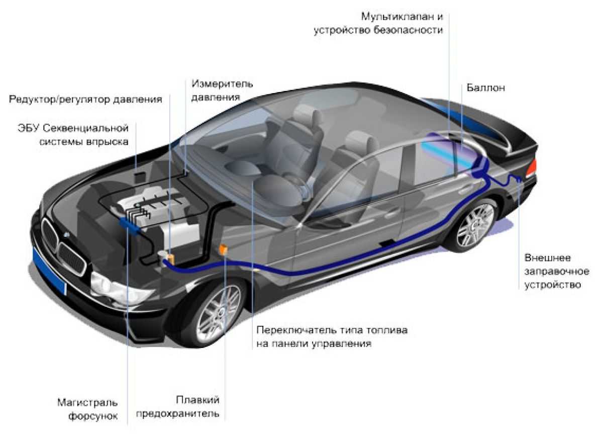 - При разработке автомобиля учитываются тип двигателя и особенности системы подачи топлива. Монтаж дополнительного баллона уменьшает полезную вместимость багажного отсека, а дополнительные магистрали могут разрушаться при столкновениях.