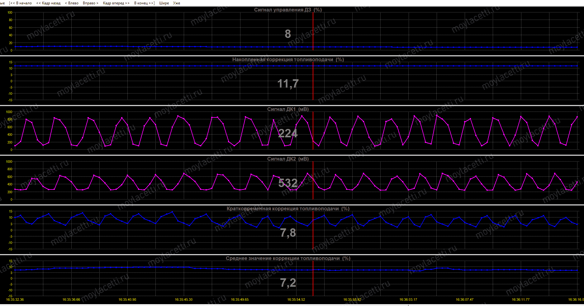 В общем, отрываем диагностическую программу и смотрим за показаниями датчиков кислорода