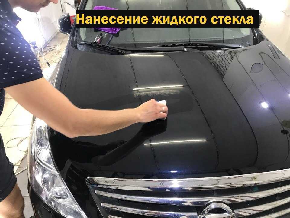 - в завершении проводится нанесение покрытия в виде жидкого стекла на кузов автомобиля.