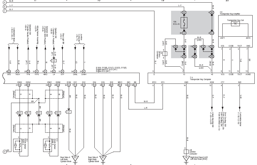 Схема датчиков детонации, блока иммобилайзера Transponder Key Computer Amplifer