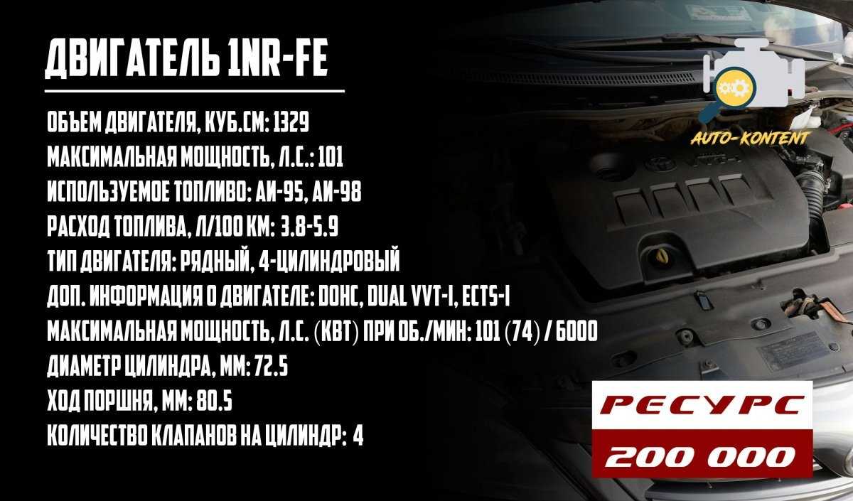 Двигатель Toyota 1NR-FE Несмотря на то, что спроектировали двигатель 1NR-FE в далёком 2008 году, он в наше время не кажется устаревшим. Технические характеристики мотора 1НР-ФЕ: