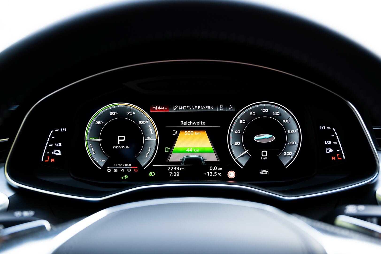 Указатель запаса хода приборной панели Audi A7 Sportback 55 TFSI e audi-mediacenter.com