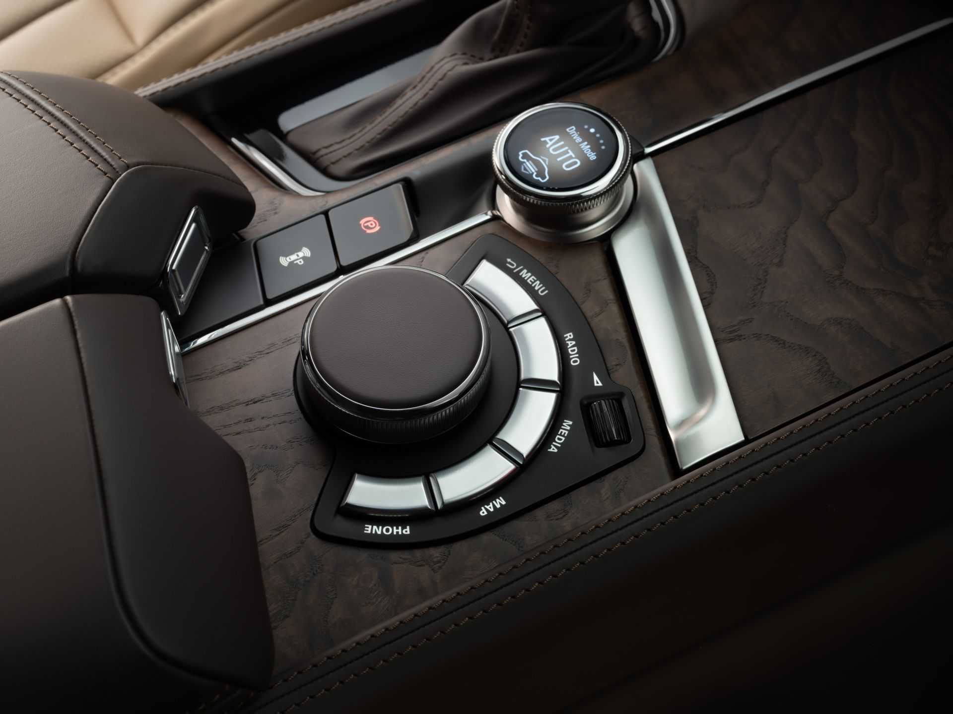- широкая центральная консоль с удобными откидывающимися подлокотниками и объемным боксом для водителя и переднего пассажира, оборудованная «шайбами» управления мультимедиа и выбора режимов движения;
