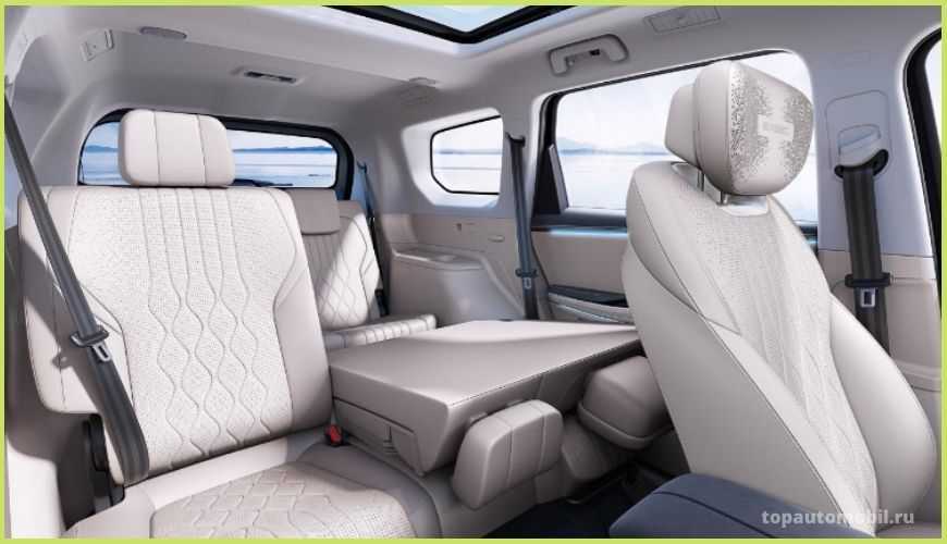 Внутри Эксид В икс созданы комфортабельные условия водителю и семи пассажирам. Благодаря эргономичным сиденьям с электрической регулировкой, большому расстоянию для ног и головы пассажиров второго и 3-го ряда, любое путешествие принесет только положительные эмоции. В отделке салона использованы натуральные и качественные компоненты. Приборная панель представлена двумя дисплеями 12,3” высокого разрешения. Аудиосистема Sony c 8 динамиками отлично синхронизируется с контурным освещением салона, имеющим 64 оттенка. Управлять функционалом автомобиля можно не только с помощью кнопок и экрана, но также отдавать голосовые команды. Очищает и ионизирует воздух в салоне интеллектуальный трехзонный контроллер.
