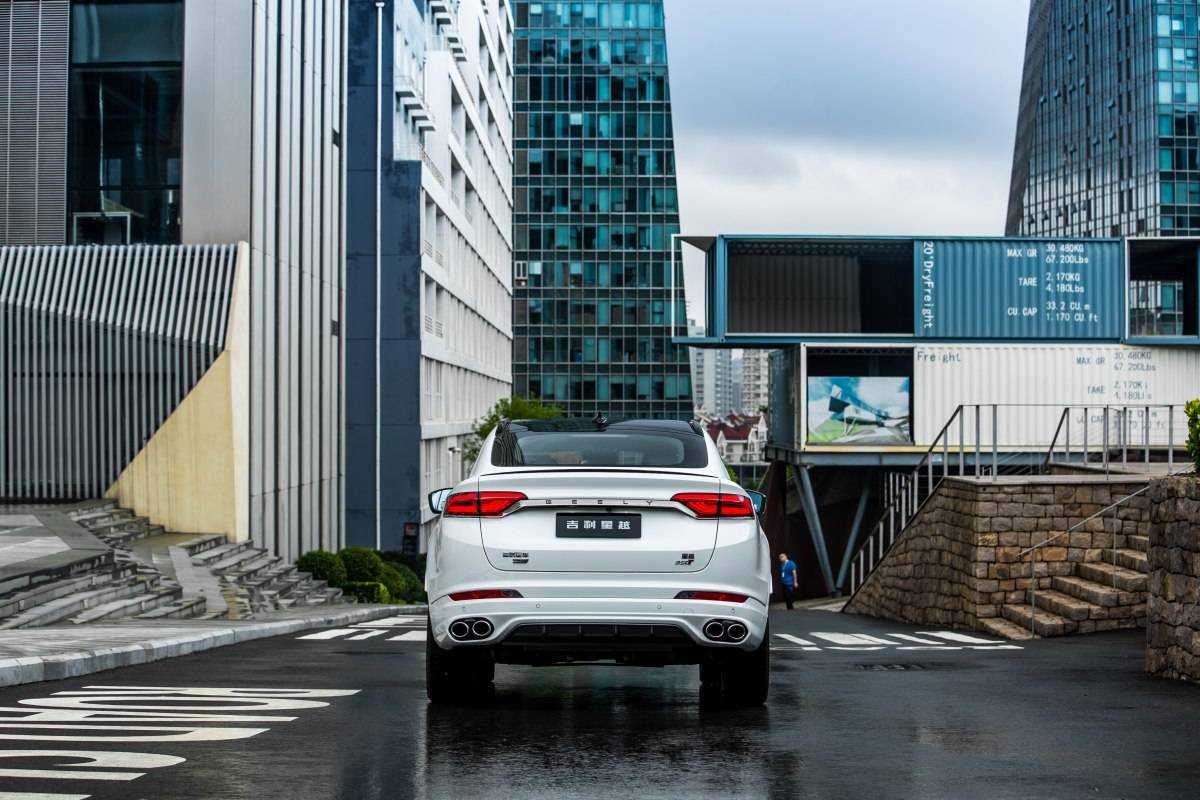 Создавая заднюю часть Geely FY11 2020 года, дизайнеры не упустили возможность и здесь подчеркнуть спортивный стиль кроссовера, добавив в конструкцию бампера сдвоенные выходы выхлопной системы. Благодаря плавным формам, корма выглядит органично и заслуживает самой высокой оценки.