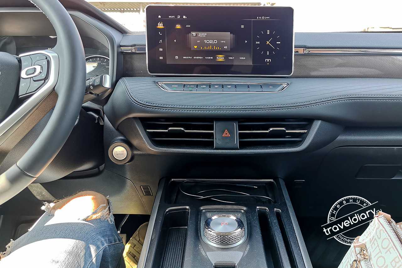 В «средней» комплектации Elite, на которой остановились мы, добавляются вертикальные светодиодные ходовые огни, светодиодные передние фары, все подушки и шторки безопасности, интегрированные багажные рейлинги на крыше, кожаный руль с подогревом, обогрев всего лобового стекла, подогрев форсунок стеклоомывателя, подогрев задних сидений, автозатемнение зеркала заднего вида, задние датчики парковки, камера заднего вида, 10″ интерактивная мультимедиа-система T-Box с поддержкой Android Auto/Apple Carplay, Bluetooth, доступом в Интернет для мобильного приложения MyHaval, акустикой Harmann с 6 динамиками и пр.