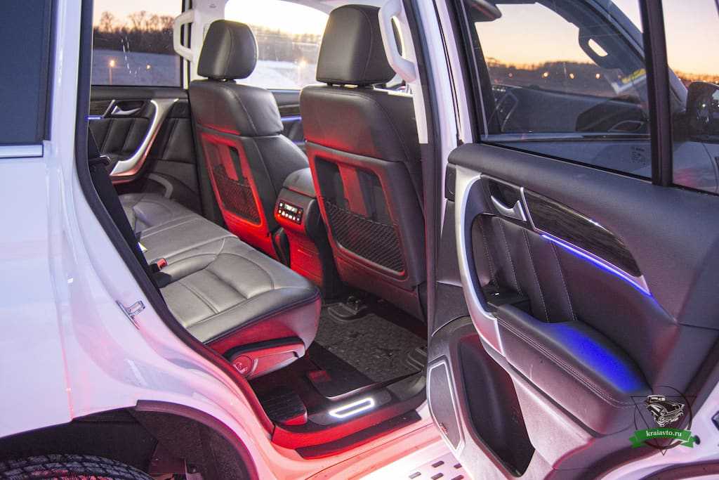 Для удобства в подножках дверей в Хавал Н9 установлены плафоны с сенсорами: подсвечивают пороги и зону выхода. В крыше люк с электроприводом.