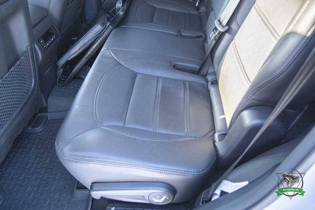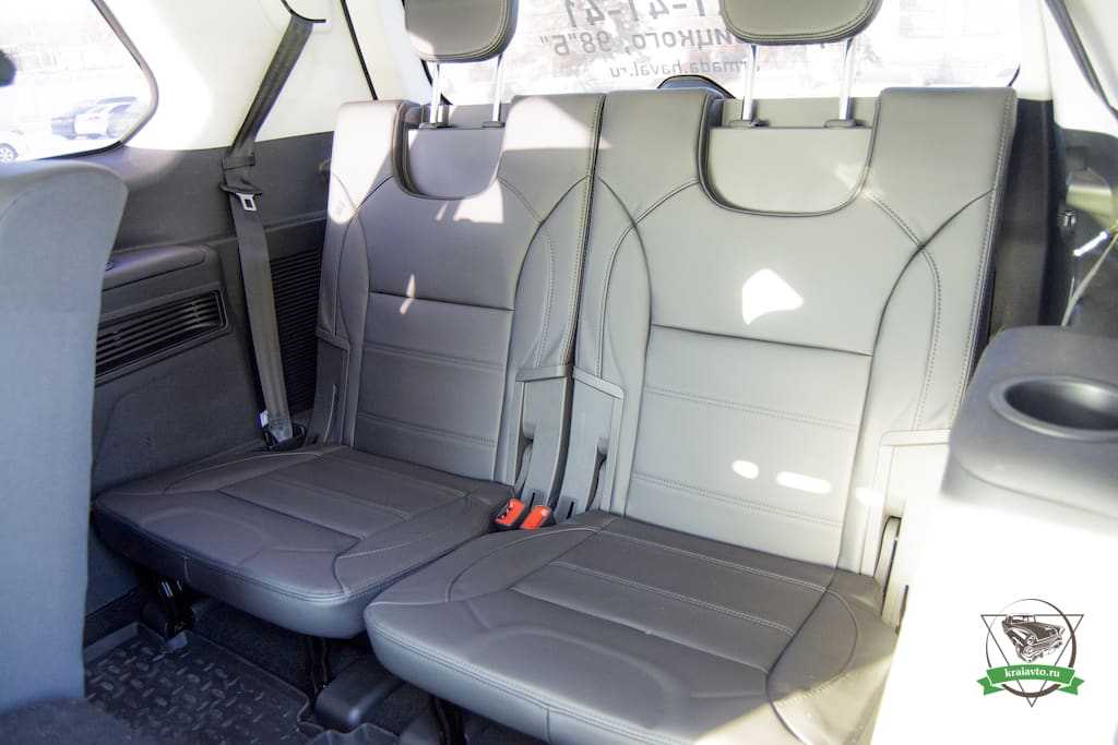 На втором ряду внедорожника Хавал Н9 вполне просторно. Но пол высокий, поэтому длинноногим будет неудобно. Регулируется наклон спинок, сиденья регулируются в продольном направлении. Есть помещение для мелочей и два подстаканника. Второй ряд сидений можно сложить в пропорции 60 на 40 (почти в пол).