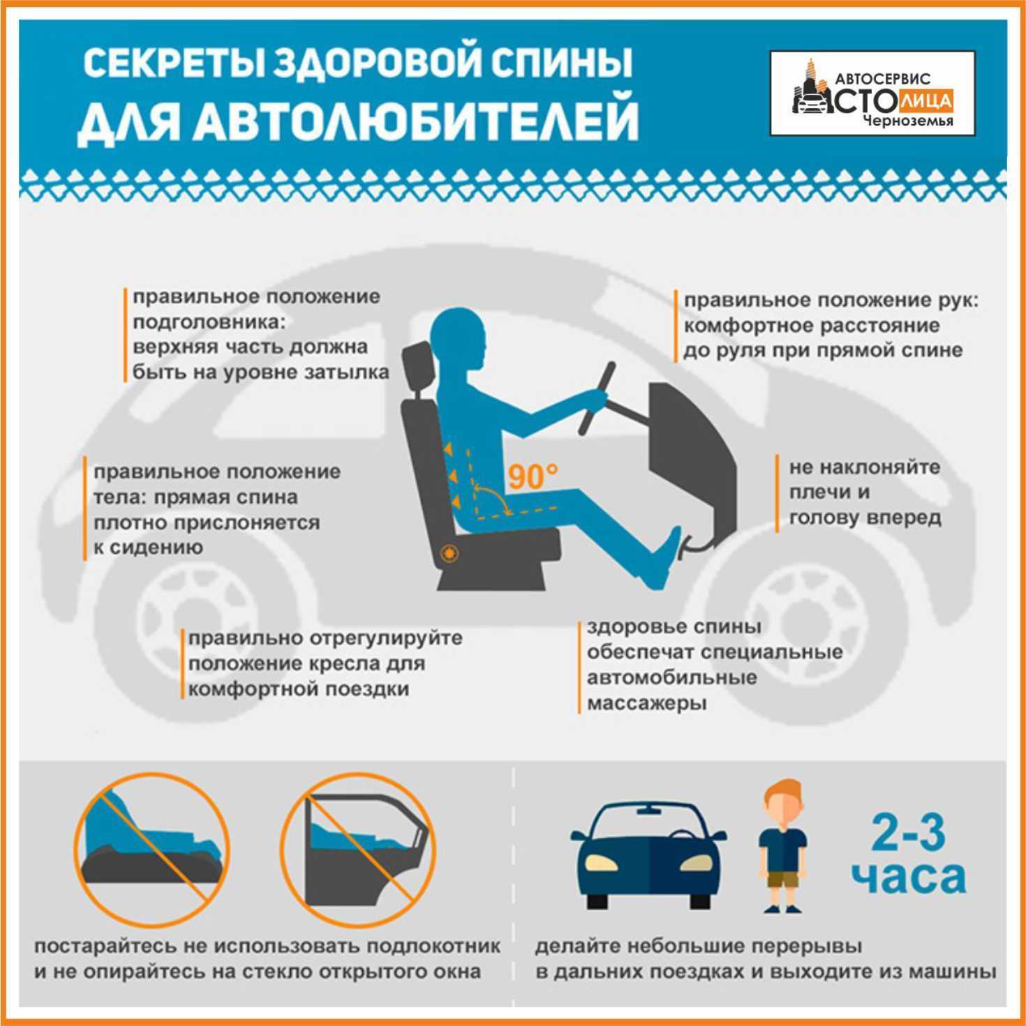 Предварительно отрегулируйте водительское кресло и средства управления под себя. При выжатой до конца педали сцепления левая нога должна находиться в слегка согнутом состоянии, правой рукой без усилий можно включить дальнюю передачу, а спина при этом все так же касается спинки кресла. Руки должны лежать на руле в верхней точке, по плечу (а не по шее!) проходят ремни безопасности.