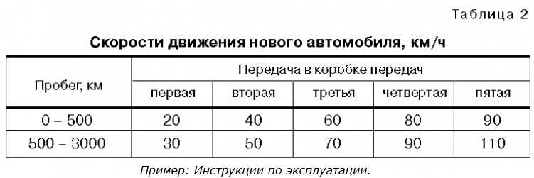 - До 2.000 км. рекомендуют ездить на скорости не превышающей 60 км./час;