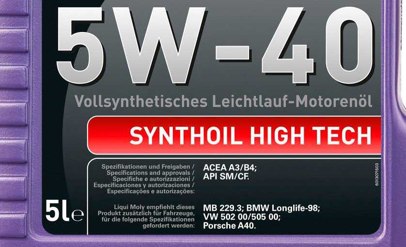 Синтетическое масло Liqui Moly Synthoil High Tech отличается устойчивостью к окислительным процессам и старению. Смазка может использоваться в двигателях с турбокомпрессором, обеспечивая защиту подшипников при повышенных температурах.