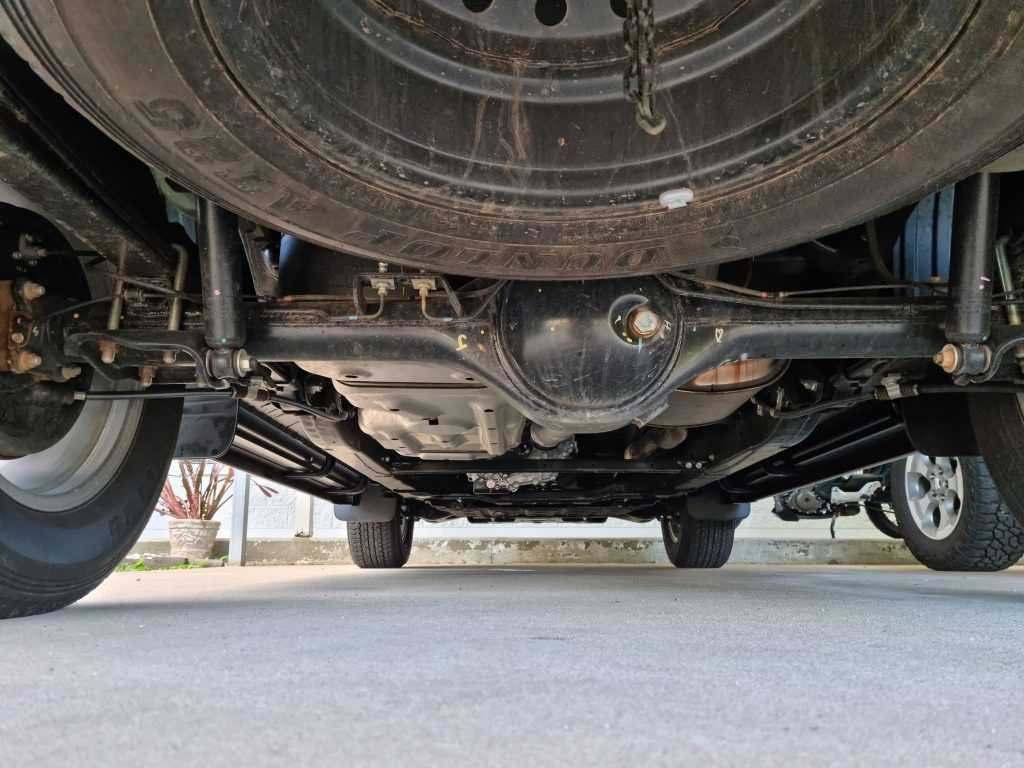 The new engine sends its torque through a 6 speed Isuzu manual or optional 6 speed automatic from Japanese supplier Aisin. 4×4 models utilise an electronically selected low range transfer case geared 2.482:1 and have an electronic locking differential that can be activated when low range is engaged. Tyres are 255/65R17 or 265/60R18 and our vehicle came with Dunlop Grand Trek Highway Terrain Tyres and a full-size spare on a steel wheel.