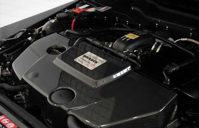Брабус назвал Mercedes Brabus 900 самым мощным в мире двенадцатицилиндровым внедорожником. С мотором 6,3 литра — двухтурбинным двигателем V12, мощностью от 900 л. сил (1500Нм крут. мом.) — с таким утверждением не поспоришь! Двигатель Mercedes Brabus 900 G 65 AMG получил стальной коленчатый вал, стальные шатуны, кованые поршни и увеличенные отверстия цилиндров. У Мерседес Брабус АМГ модифицированные выпускные коллекторы, более крупные компрессорные агрегаты и более высокое давление наддува объединяются с более крупными трубами и новая выхлопная система из нержавеющей стали