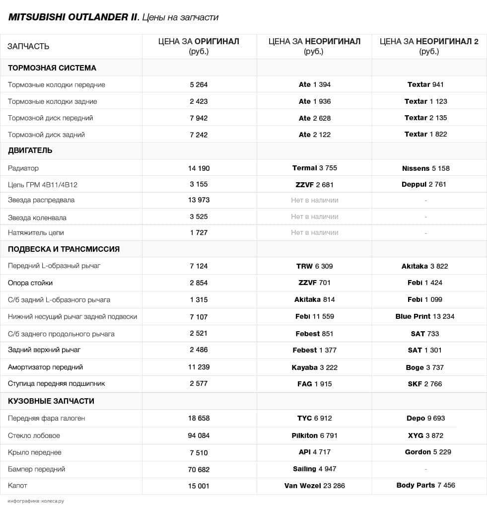 Еще несколько маловат ресурс подшипников ступиц Mitsubishi Outlander 2 : при использовании 18-дюймовой резины их ресурс не превышает 120-180 тысяч километров. Правда, и цена невысока, но приходится совмещать замену с ремонтом подвески. Да и тянуть с ним не стоит: подшипники склонны к заклиниванию, а это в большинстве случаев приводит к тяжелым ДТП.