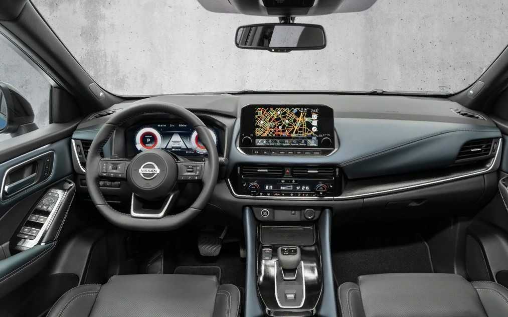 Интерьер Ниссан Кашкай 2021 в новом кузове переделан намного заметнее, чем кузов. Основная часть изменений заметна на передней панели, где расположен напоминающий планшет экран мультимедийной системы с диагональю от 8 до 10,8 дюймов. Здесь же расположены декоративные пластиковые вставки, несколько хромированных элементов и светодиодная подсветка. Под центральной частью передней панели находятся воздуховоды и блок управления микроклиматом, на котором расположены механические кнопки и небольшой монохромный экран.