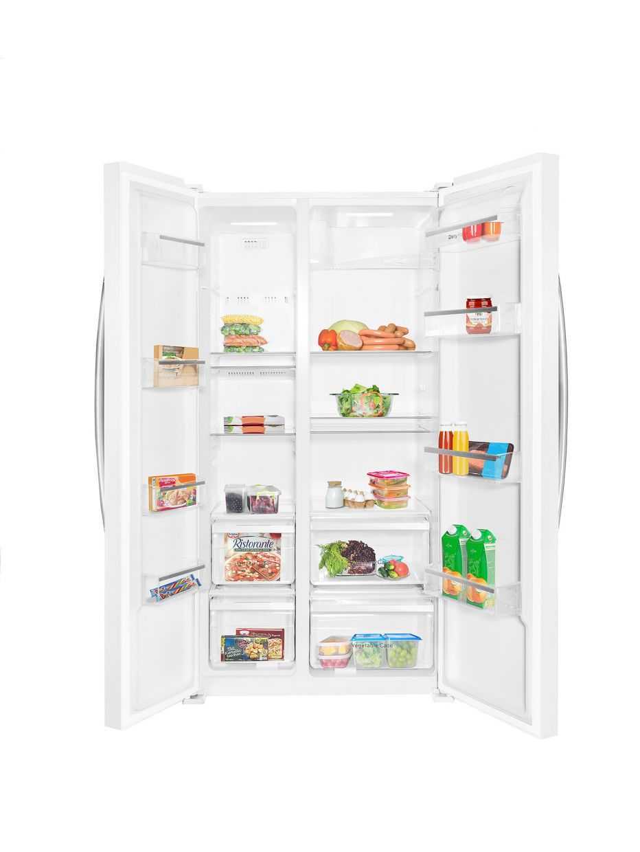 Так же, как и предыдущая модель, RSH5110WNG оснащен системой Перфект Ноу Фрост, которая распространяется на обе камеры холодильника. Не обошлось здесь и без стремительного охлаждения и заморозки продукции. Включать и отключать эти функции, а также регулировать и отслеживать температурный режим можно при помощи сенсорного дисплея управления, который расположен на внешней панели морозильного отсека. Полки, так же как и в предыдущем случае, выполнены таким образом, что позволяют избежать протечек и преждевременного загрязнения холодильника. Отделения этого холодильника такие же большие