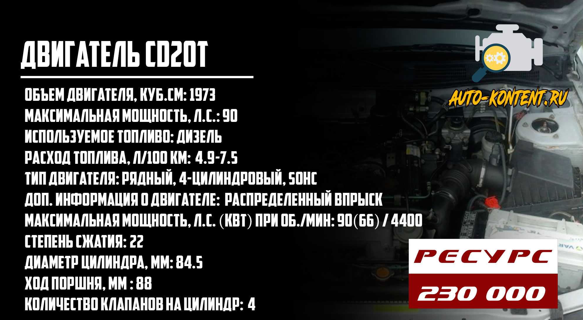 | Ресурс двигателя, тыс. км — по данным завода — на практике | н.д. 200+ |
