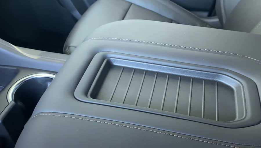 - передний большой центральный подлокотник оборудован объемным боксом, сдвижной верхней крышкой, перемещается вперед и назад, причем может делать это даже посредством электропривода;