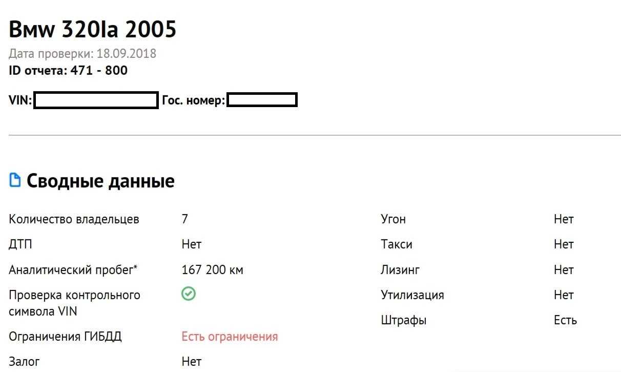 Проверяем автомобиль через сервис avtocod.ru и видим, что у него есть ограничения на действия по регистрации. То есть такая машина не может быть зарегистрирована на самой себе.