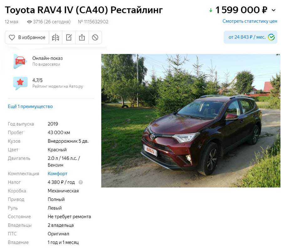 На российском вторичном рынке есть масса предложений RAV4-IV, стоимость подержанной машины в хорошем состоянии в 2022 году начинается от 1,1-1,2 миллиона рублей.