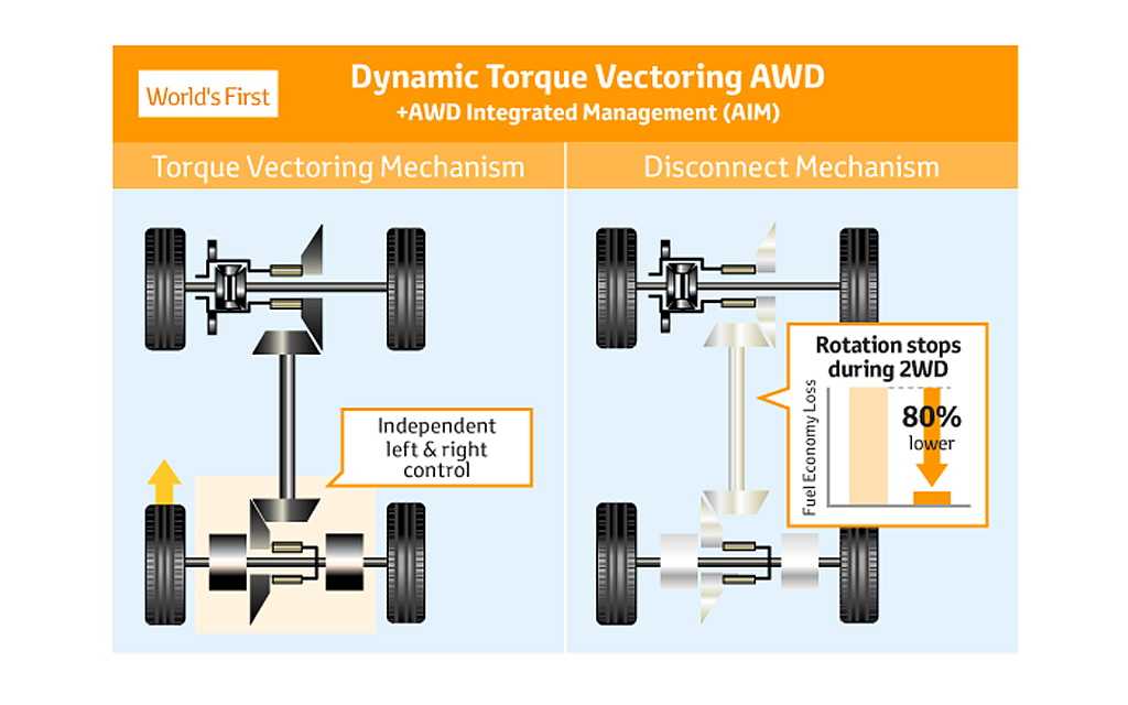 Распределением момента в трансмиссии Dynamic Torque Vectoring заведует специальный блок управления, расположенной в кормовой части автомобиля. Он учитывает множество параметров, в том числе, положение рулевого колеса, частоту вращения колес, угловое ускорение, положение педали тормоза, выбранную передачу. На основании полученных данных ЭБУ дозирует тягу на задних колесах, причем передаваемое усилие определяется исключительно силой тока на электромагнитах.