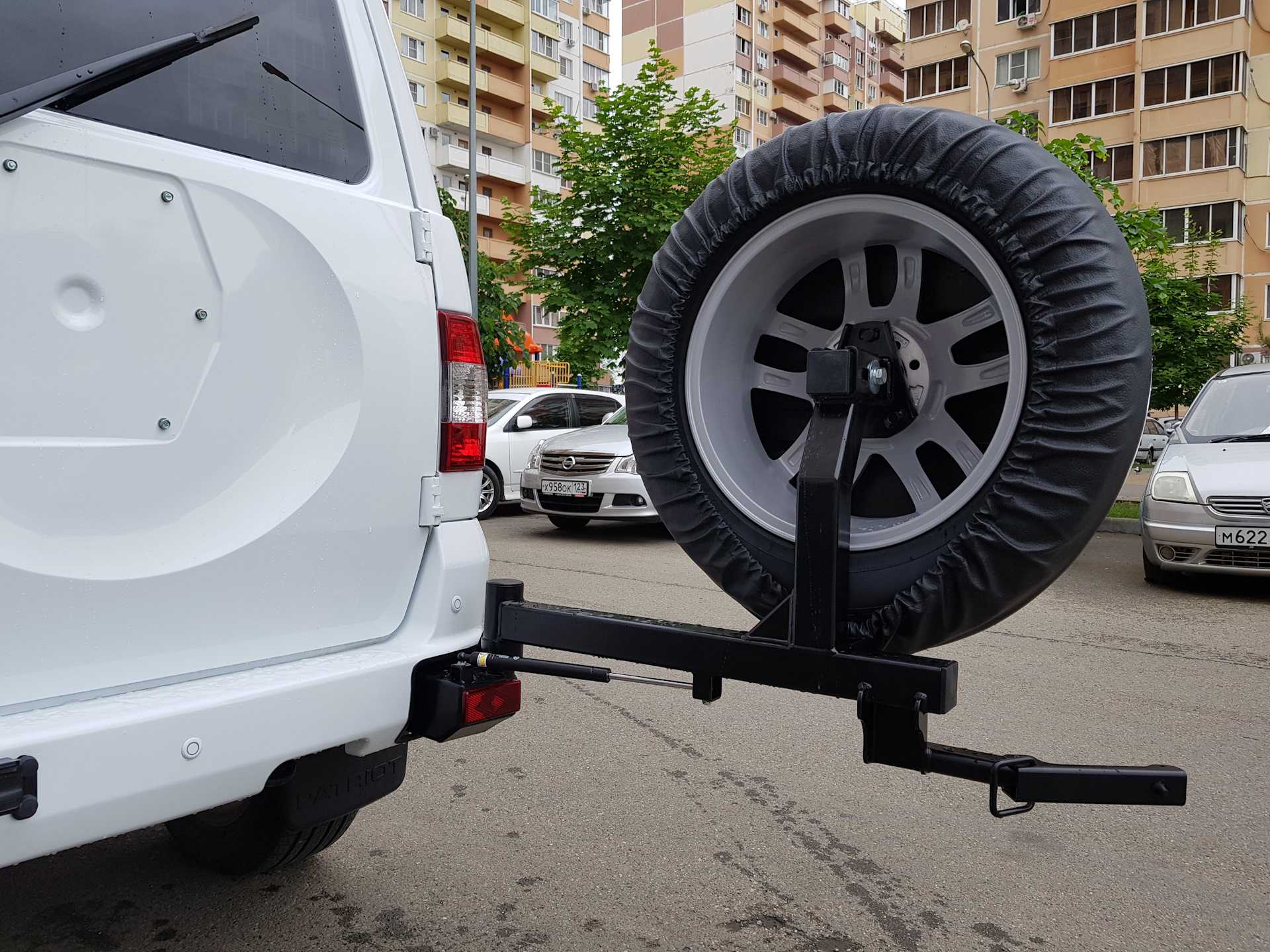 - держатель запаски на задней двери: есть фиксированный и поворотный варианта;