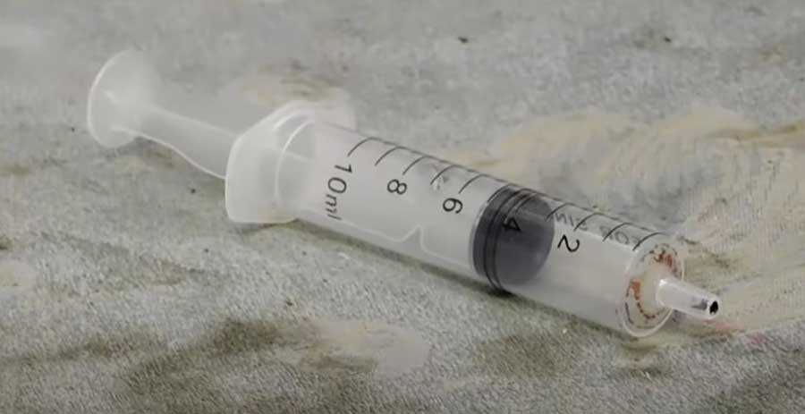 - Наблюдайте за состоянием искры постепенно отодвигая поршень, как будто втягивая жидкость.