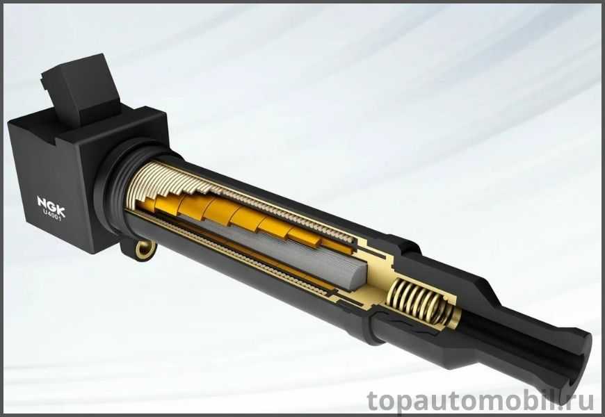 В основе работы катушки зажигания лежит принцип работы повышающего трансформатора, когда небольшое напряжение в 12 В преобразуется в несколько тысяч вольт.