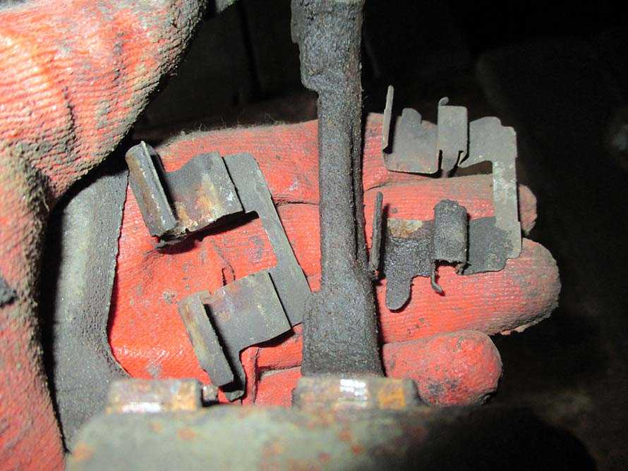 В этом случае удаётся привести всё в норму, купив и установив ремкомплект тормозных колодок, в состав которого входят пружины, направляющие и распорные планки.