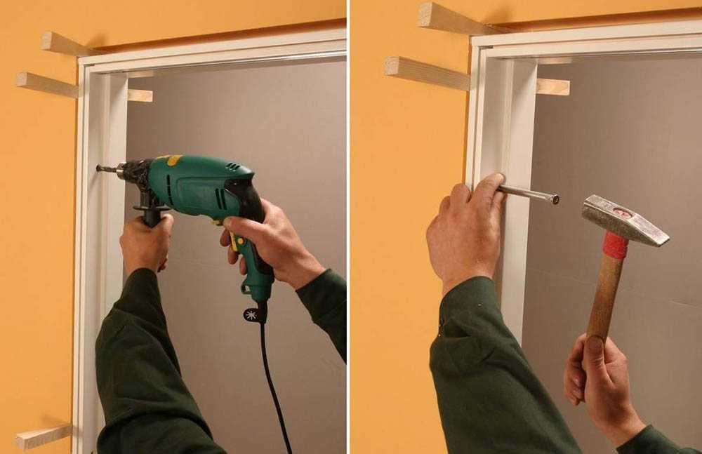 Если для крепления дверной коробки и наличников были использованы шурупы, а не гвозди, то для разборки понадобится шуруповерт.