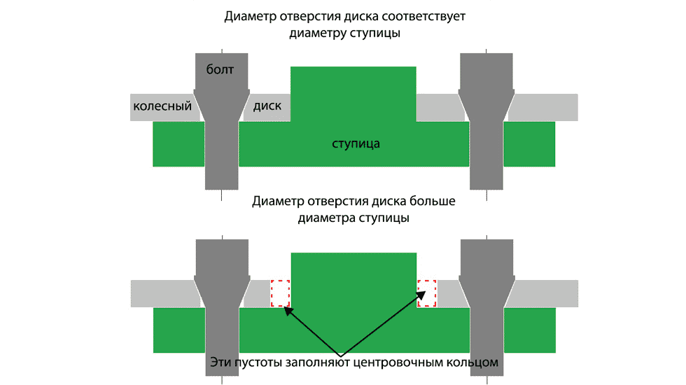 Установка диска и дисковых болтов (вид сверху) без центровочного кольца и с ним