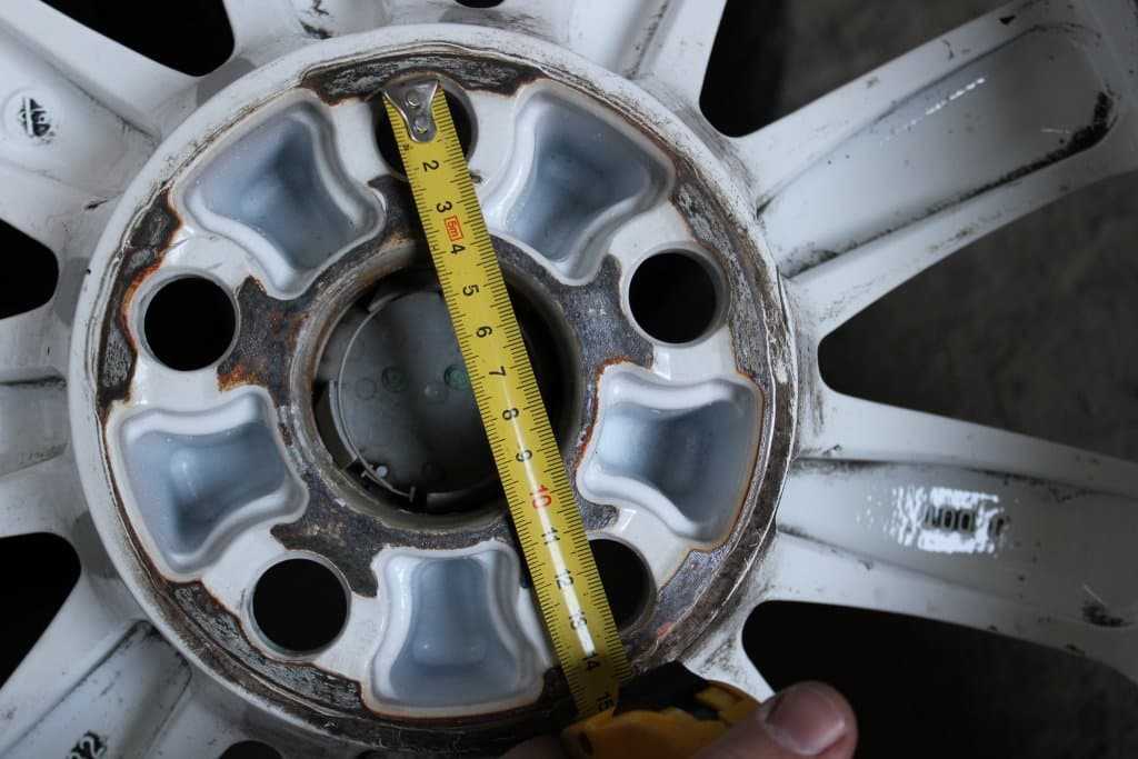 Если колесо или ступица имеют рисунок с пятью болтами, измерьте от центра одного отверстия до внешнего края отверстия, расположенного дальше всего.