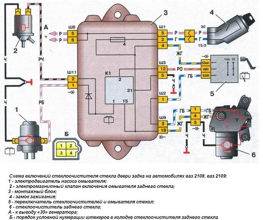 При отказе дворников работать только в одном прерывистом режиме, то при поиске неисправности можно сделать предположение, что вышла из строя микросхема, находящаяся внутри реле К6, при помощи которой, щётки стеклоочистителя делают паузу в работе. А отказ дворников работать на первой или второй скорости, может быть связан с зависанием одной из трёх щёток коллектора электродвигателя мотор-редуктора.
