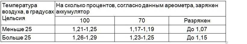раствора. Уровень заряда покажет плотность электролита, и чем она меньше, тем