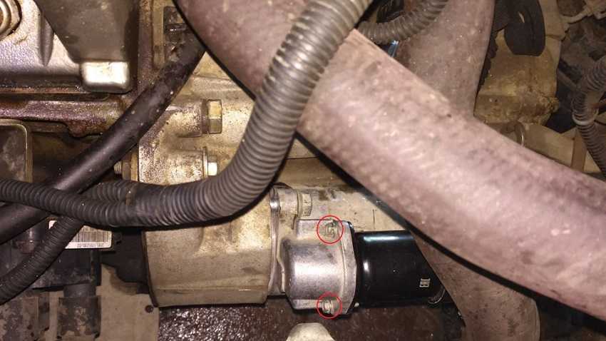 - Замкнуть контактные болты на тыльной части стартера, пользуясь куском провода. Ток будет идти в обход втягивающее реле;