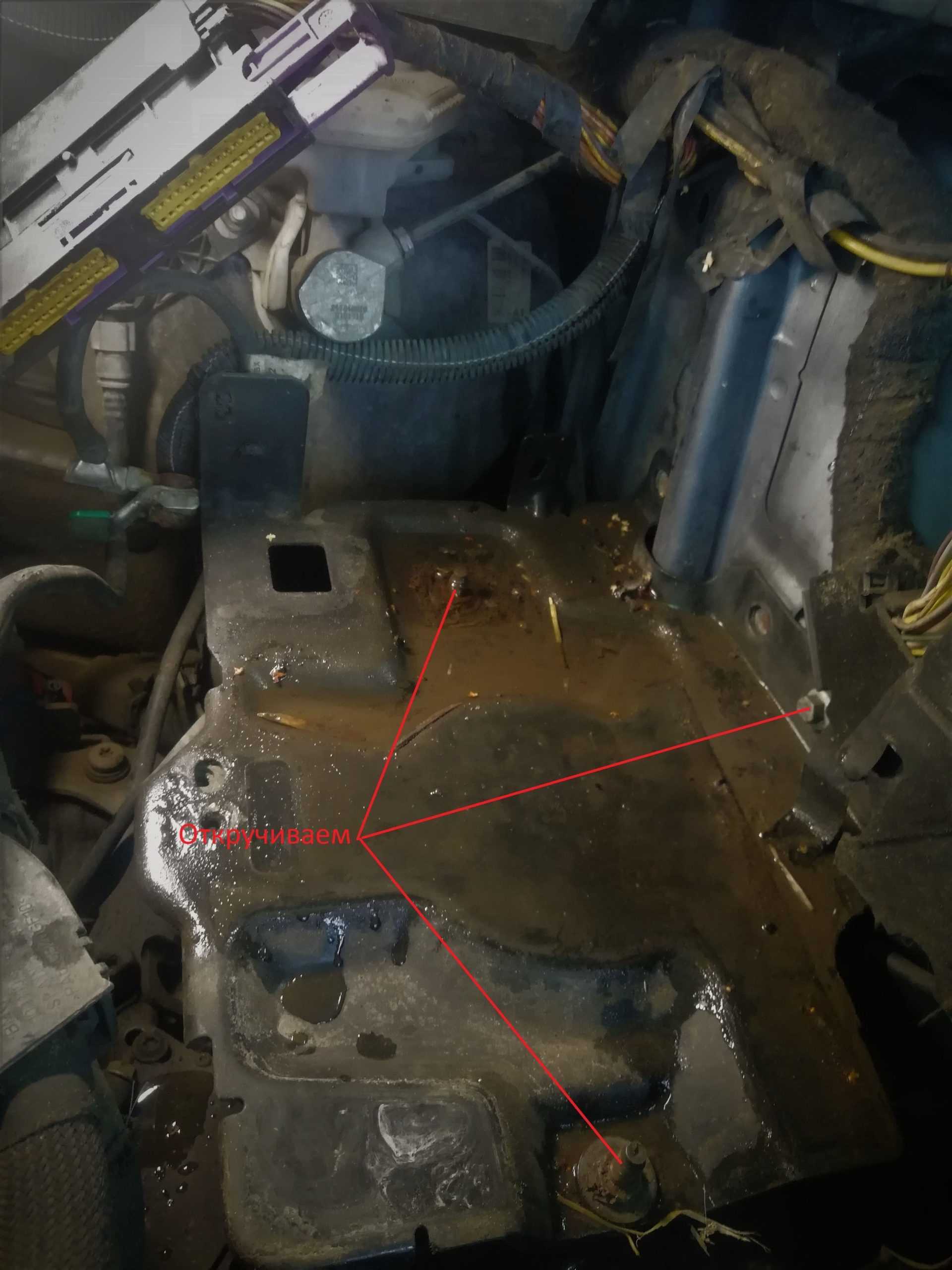 • Слить масло из АКПП. • Отсоединить аккумуляторную батарею . • Поставить емкость для сбора с целью последующей утилизаци. Слить все.