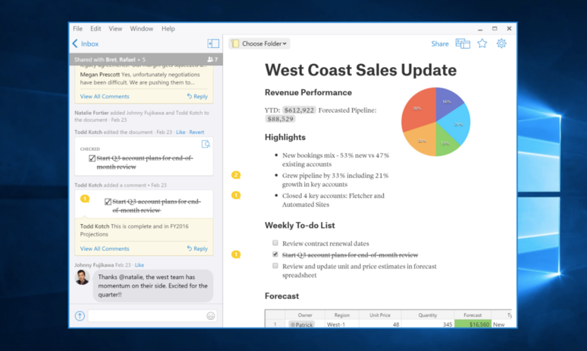 Также в Quip есть утилиты для брейнсторминга (создания интеллект-карт), аналог системы пул-реквестов, средства коммуникации, функции отслеживания изменения в документах, встроенный календарь и собственное облако для синхронизации данных. Quip доступен как в вебе, так и на мобильных устройствах.
