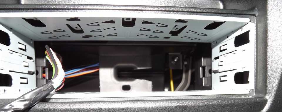 4. Теперь снимите с магнитолы металлическую рамку и установите на место, где стоял пластиковый карман. Разгибая усики рамки, зафиксируйте надежно ее на месте.
