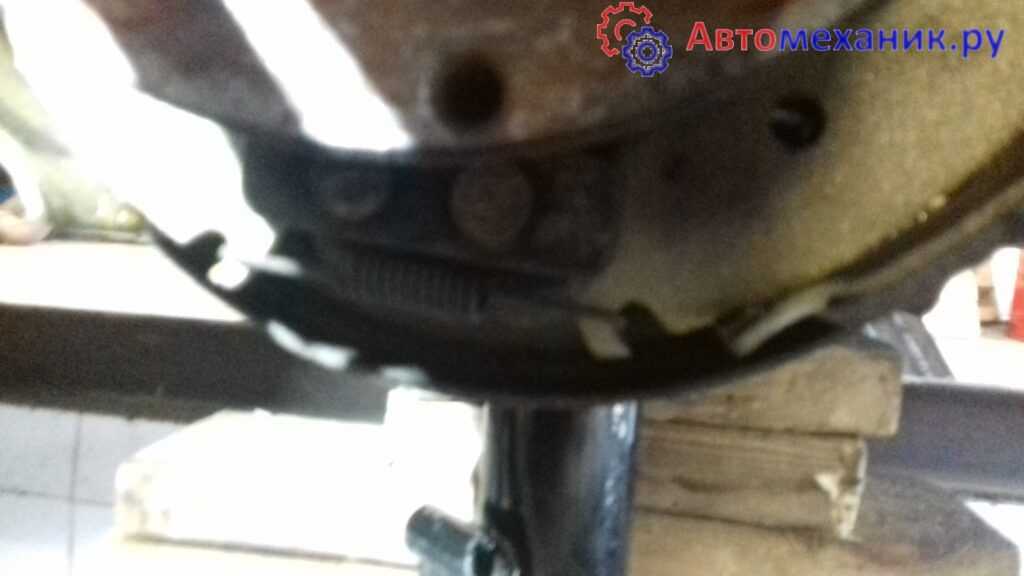 11. Снимаем с колодки стяжную пружину и пружину с распорного стержня