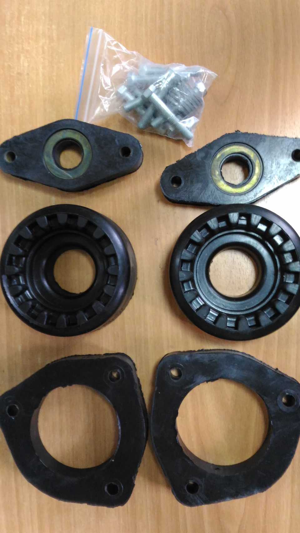При этом резина стоит недорого, но изнашивается быстро. Полиуретановые проставки стоят в пределах 1000–1300 рублей за комплект передних и 1300–1600 рублей за комплект задних. В комплект входят шесть болтов М8х50 мм и две проставки (для передних стоек). Размер проставок можно выбрать от 20 до 40 мм.