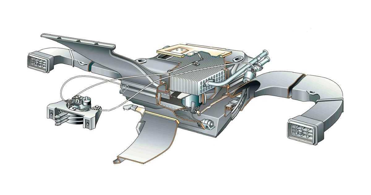Потоки воздуха в салоне распределяются воздухопроводами, расположенными внутри приборной панели.