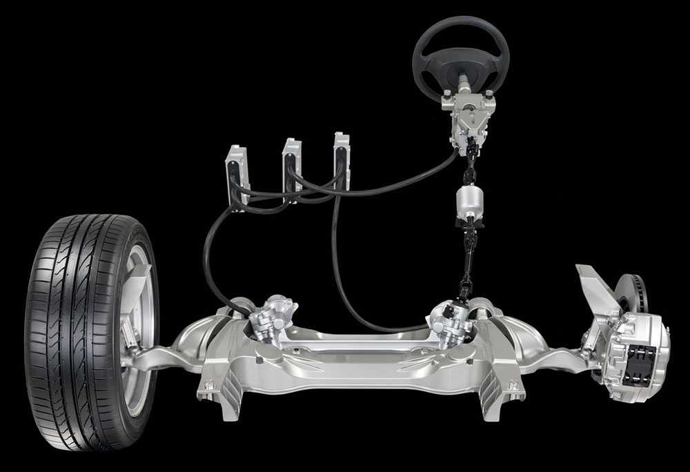 - Адаптивного рулевого управления (управление по проводам). Это самая новая и перспективная система. В ней отсутствует прямая связь между рулем и колесами, всё работает за счёт датчиков и исполнительных устройств (сервоприводов). Большое распространение система ещё не получила по причине психологического и экономического факторов.