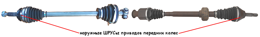 Наружные ШРУСы установлены на концах валов приводов передних колес автомобиля. Каждый наружный ШРУС непосредственно вставляется по шлицам в ступицу колеса и закрепляется ступичной гайкой.