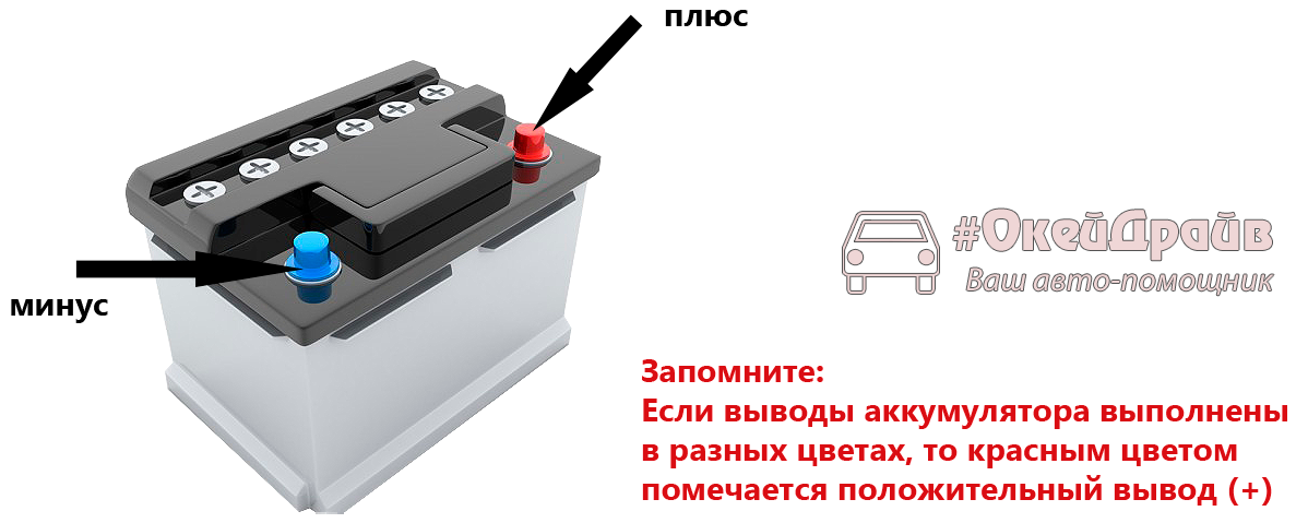 Для начала ликбез по теме «что есть что» для того что бы следуя нашим советам вы могли отличить одно от другого. Любая аккумуляторная батарея имеет последовательно соединенные банки, которые выведены на два наружных контакта – клемма «+» обычно обозначающаяся красным или оранжевым цветом и имеющая более толстый усеченный конус, и клемма «-» обозначаемая синим или черным цветом и конус у нее несколько тоньше. Минус это есть «масса» — контакт постоянно замкнутый на кузов автомобиля. Плюс всегда рвется ключами электрической схемы.