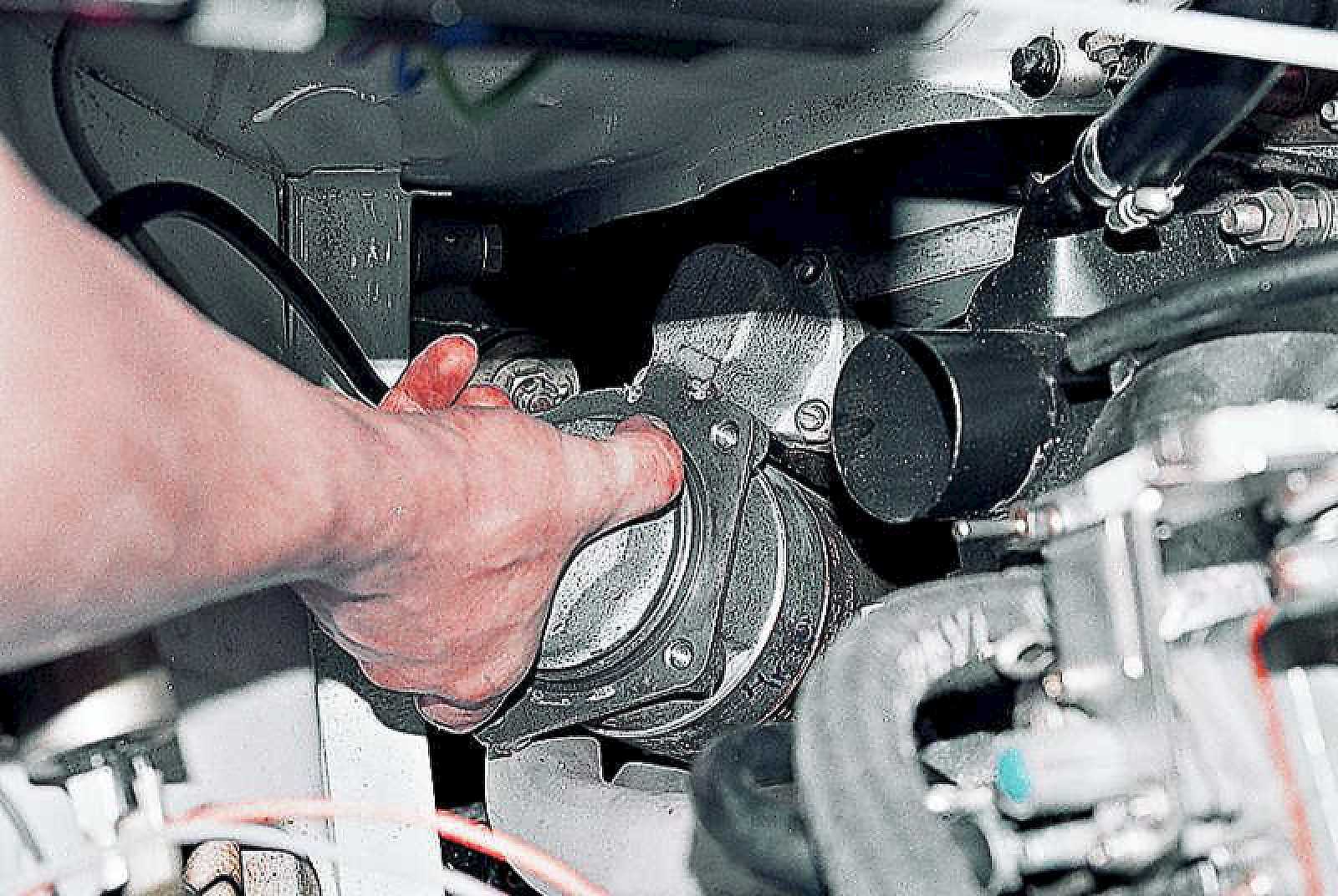 - Остается выкрутить два крепежных болта и снять устройство с силового агрегата.