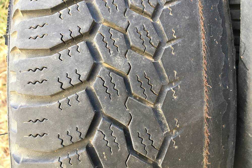 Из-за проблем с развалом-схождением внутренняя часть шины стерлась до корда