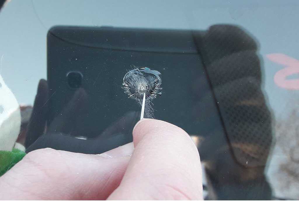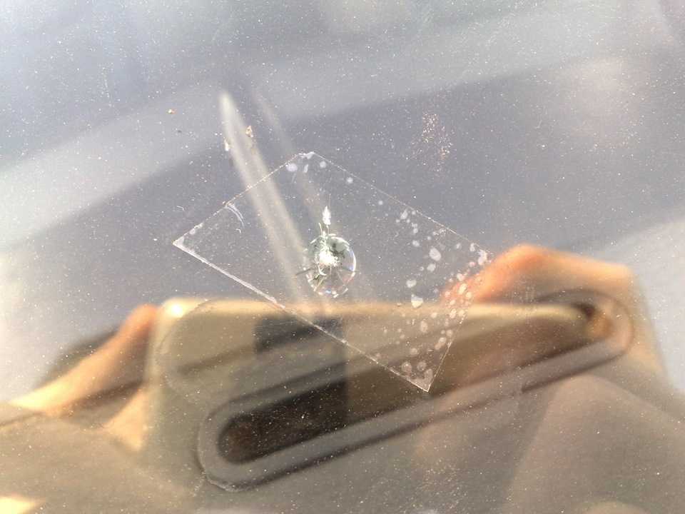 Если попал камень в лобовое стекло и образовалась выбоина, следует принять следующие меры: