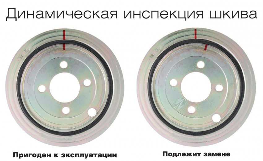 - Повреждение и плановый износ шкива. Требуется замена. Возможен ремонт при незначительных повреждениях.