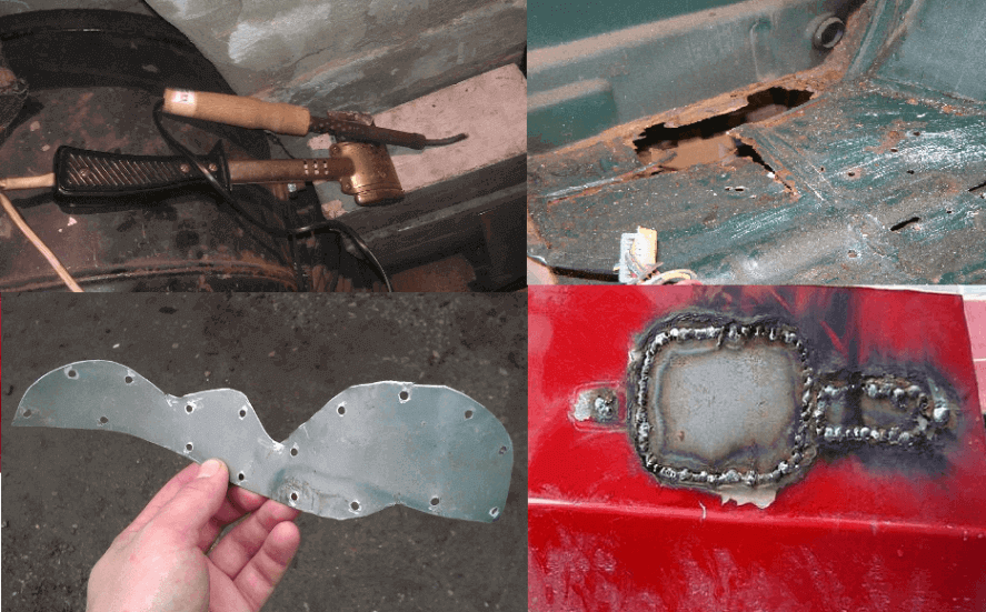 Ремонт кузова посредством сваривания, включая сварку днища, сводится к установке на повреждённом месте небольшой латки из металла той же структуры и толщины.