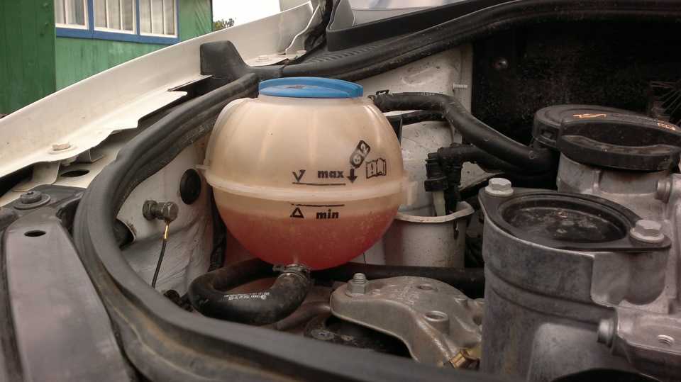 После, следует заглушить двигатель и осторожно открыть крышки расширительного бачка и радиатора. Впоследствии, необходимо долить охлаждающую жидкость: в радиатор — до горловины, а в расширительный бачок — между рисками «minimum» и «maximum». Пустить «движок» и дать поработать 2-3 минуты на холостом ходу